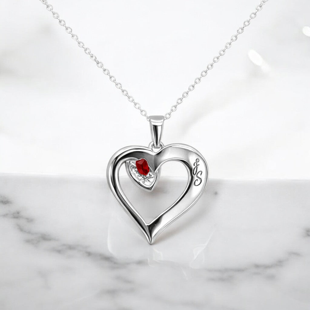 Pear Shaped Garnet and Lab Grown Diamond Heart Pendant in 925 Sterling Silver